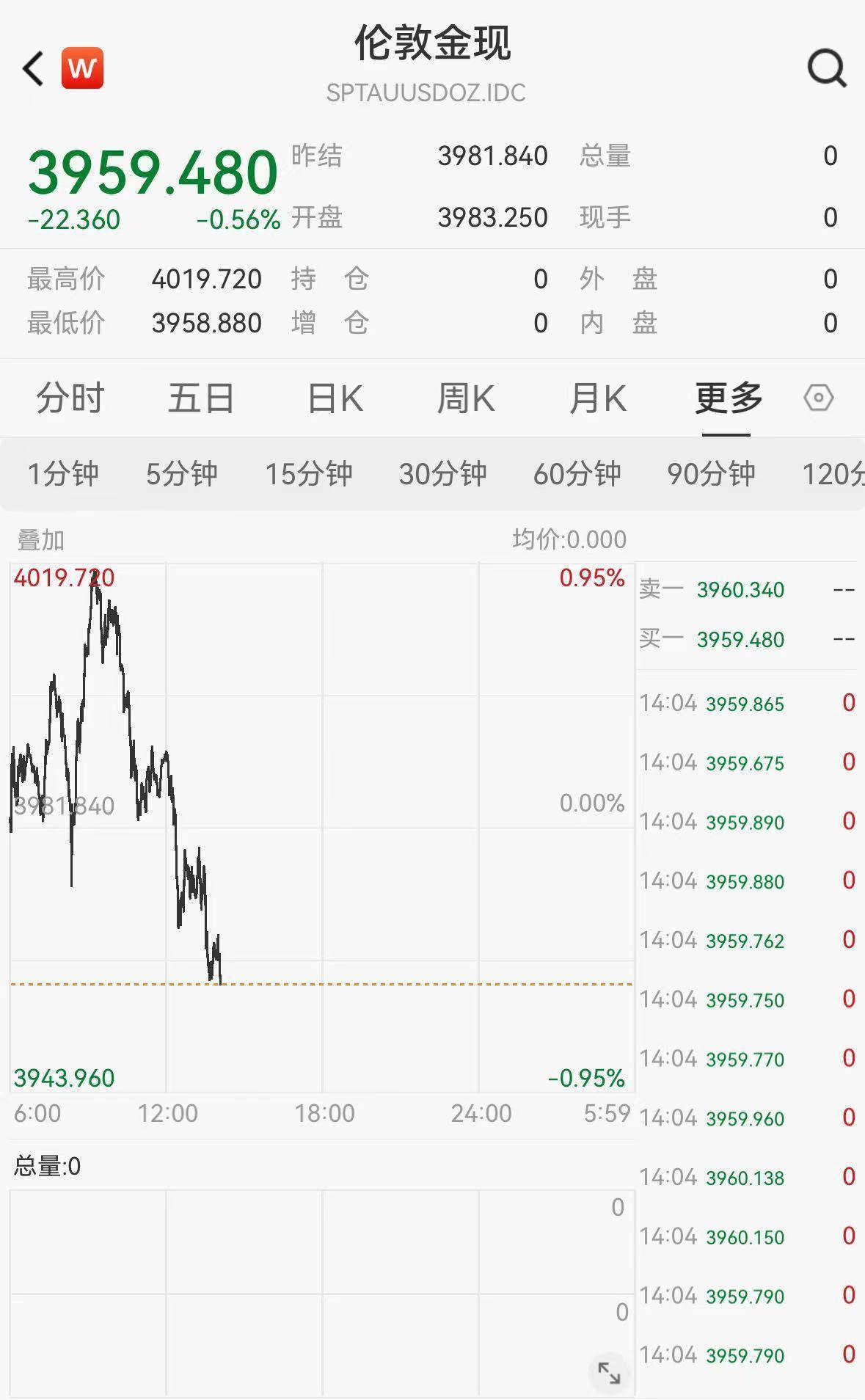 10月28日,现货黄金盘中一度站上4000美元/盎司关口,随后下挫金赢中心,价格跌破3960美元/盎司。
